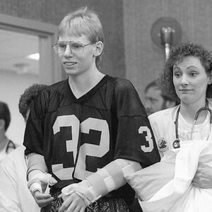 John Thompson. 18 year old kid lost both arms in a farm machinery accident, walked home, and then dialed 911 with a pencil in his mouth. Both arms were reattached.Show All 28 Upvotes