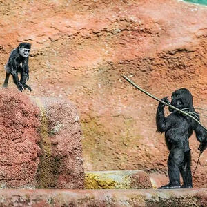 Not a known picture, but my most favorite nonetheless. Baby gorilla squaring up with a mantled guereza in the Prague zoo.