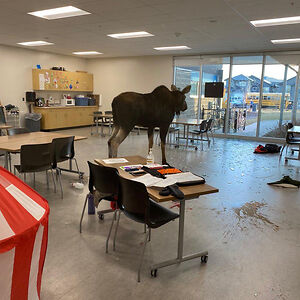 a young moose crashed through a school window in my city a few years ago (she was tranquilized by game officers and released outside the city).