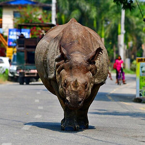 Idk if it's iconic but this is One horned rhino chilling around im the streets of Sauraha, Nepal.