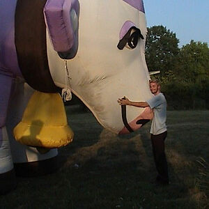 My sister-in-law worked on a ski hill. One week there was a promotion by a company where they would blow up big inflatables (like the big gorillas you see in car lots). She had seen them blow them up and deflate them for days, so she knew what the deflated ones looked like. One day she was leaving work and one of these deflated mascot thingies was right behind her car. My sister-in-law has never stolen anything in her entire life, but at that moment she decided out of the blue that she wanted that blow-up. She plopped it in the back and drove home. When I came to visit a couple weeks later she was freaking out about it. She asked me if I wanted it, just to get the evidence out of her house. That is the story of how I came to own a 2-story-high inflatable cow.